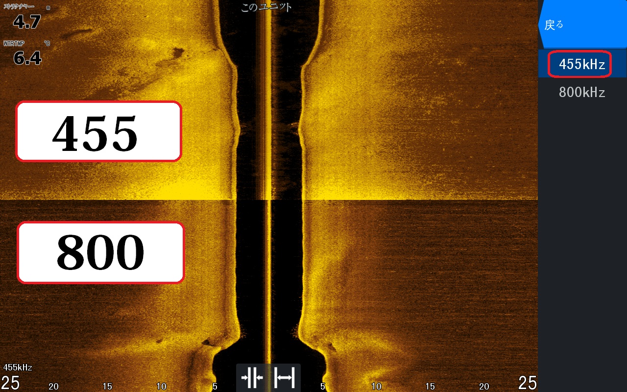 455ヘルツに800ヘルツの違い! 使い分けとしては、広範囲を見る455ヘルツ!鮮明に写す800ヘルツ!といった使用方法です!
