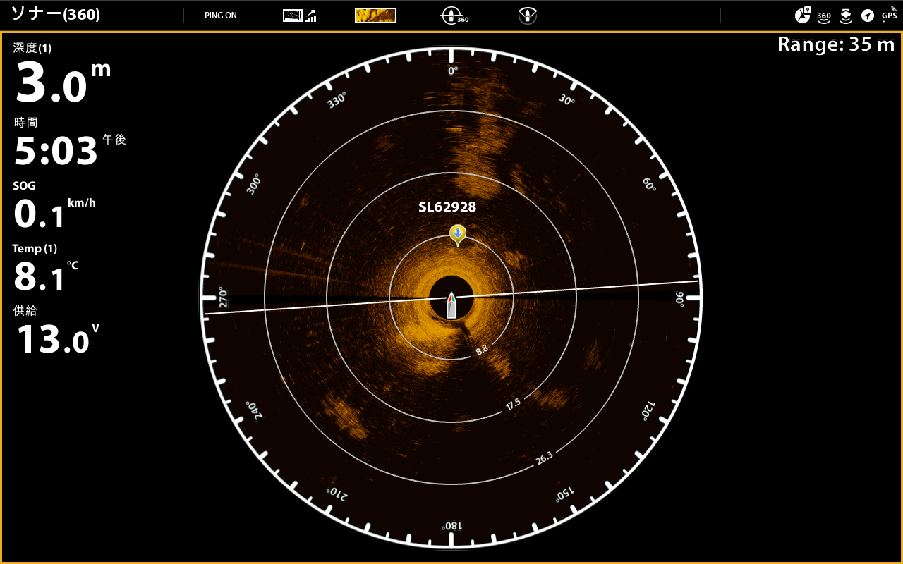 たどりついた上記スポット!あからさまにバスが写ってます!フィッシングショーで多くのご質問をいただきましたが「サイドイメージ=地形を探す」だけでは無く、サイドイメージでもしっかりと魚をとらえる事が可能です!